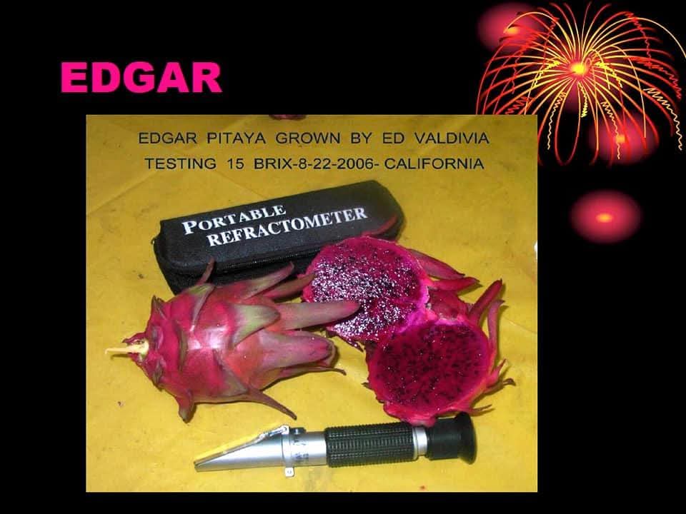 Edgar Dragon Fruit variety comes from the genus Hylocereus and the species polyrhizus. This variety was previously known as Red ES1, with “E” standing for Edgar and S1 for Seedling 1.